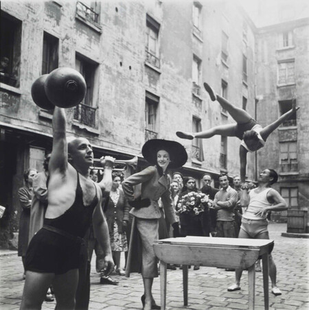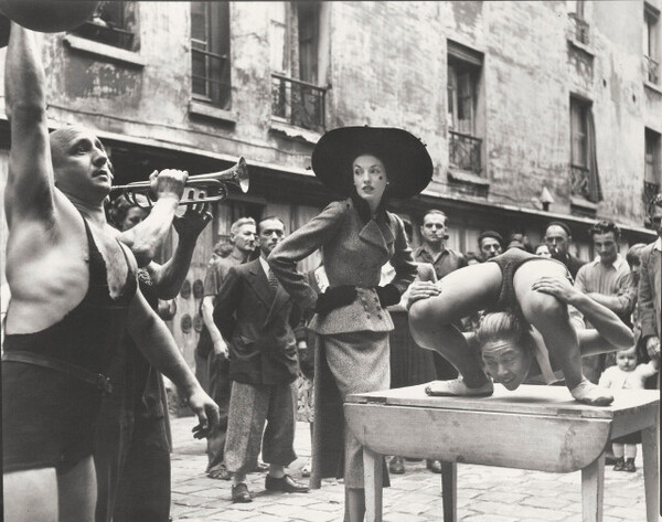 Рис. 16-17: Ричард Аведон. Элиз Дэниелс с уличными артистами, Марэ, Париж, 1948