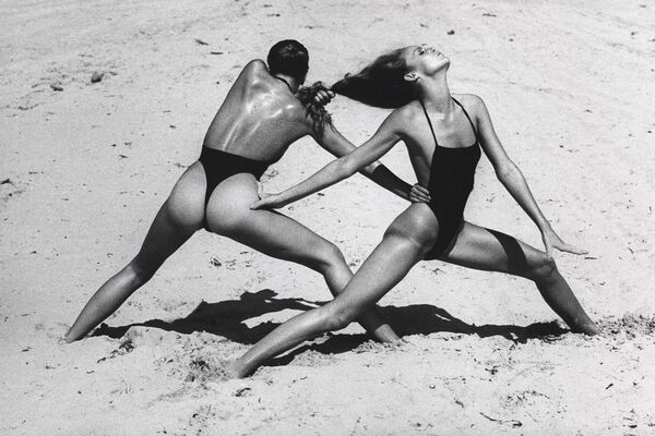 Рис. 32: Хельмут Ньютон. Шарлотта Рэмплинг. Путеводитель по фитнесу в Vogue, 1976 Рис. 33: Хельмут Ньютон. Пляжные упражнения, Майами, 1975