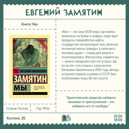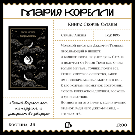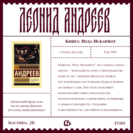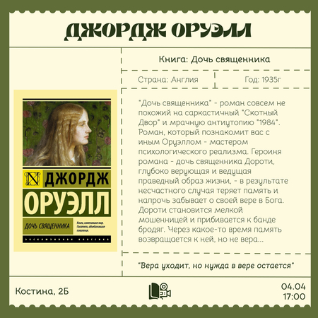 Поэтому посты для соцсетей имеют в своей основе приглушённые оттенки, пунктирные линии и очертание билетика. Также с помощью заголовка, как основного акцента поста, хотелось подчеркнуть характер самого произведения