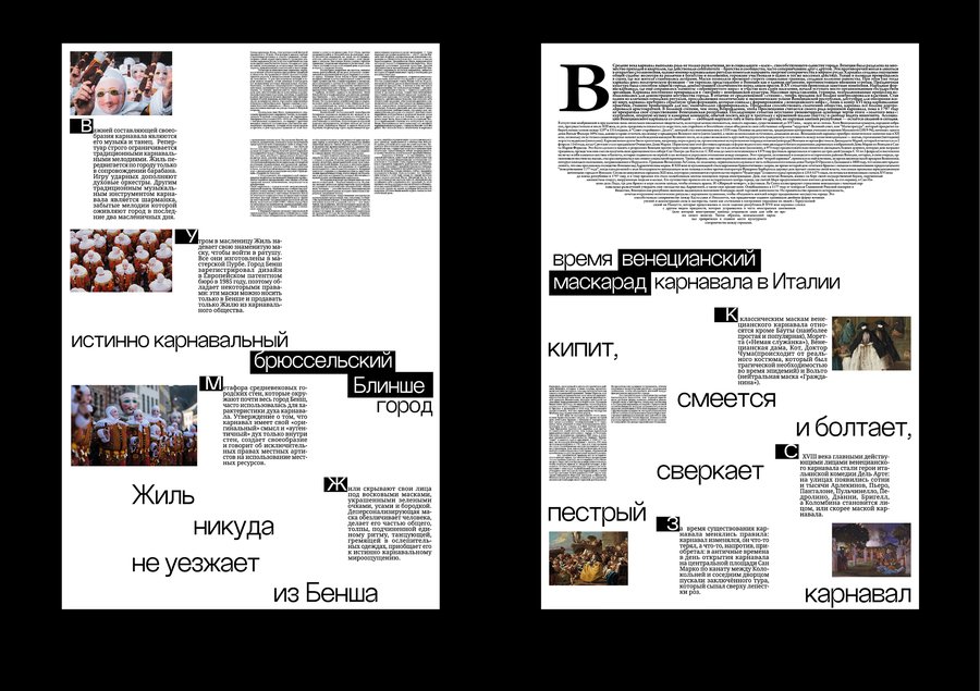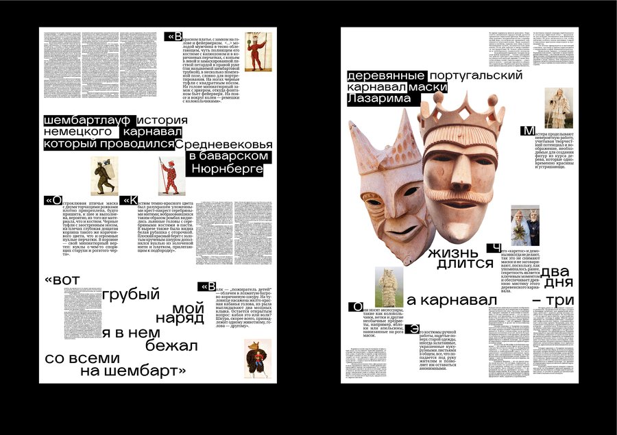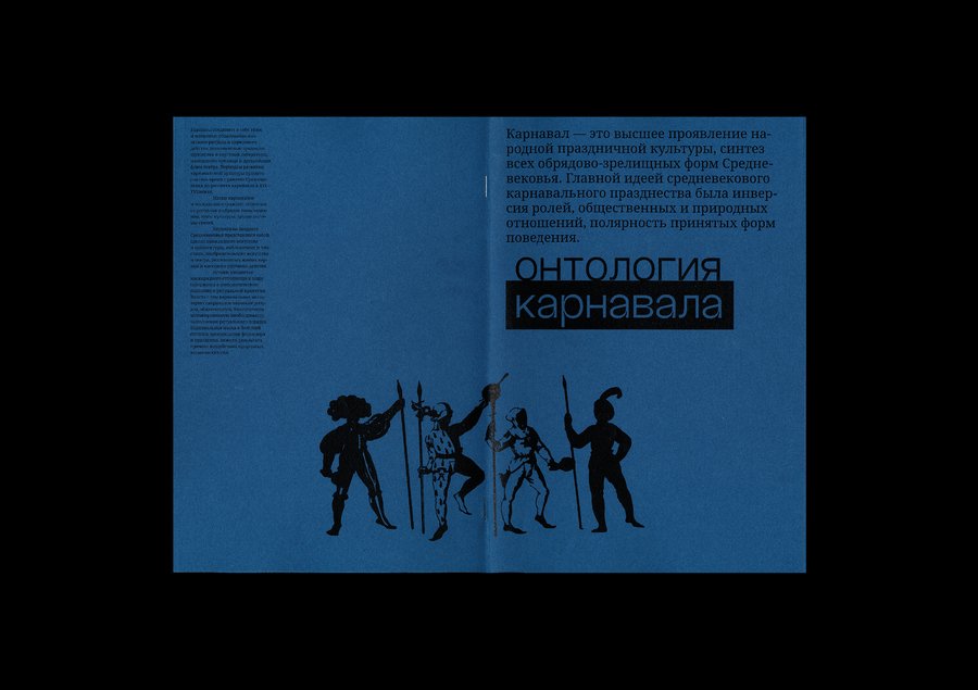 Во второй части — зин, «Онтология карнавала» посвященный смеху, маскам и причудливым обрядам, в которых свое отражение нашла «низовая» карнавальная культура, стремящаяся временно освободиться от официальных норм и иерархий.