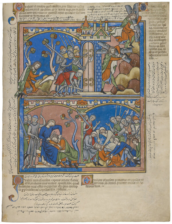«Samson and Delilah» (миниатюра, Crusader Bible, fol. 15v). Источник: The Met / Wikimedia (дата обращения: 10.11.2025)