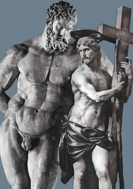 Раннехристианское искусство включает в основу своего изображения каноны написания античного героя, а конкретно Геракла: культура начинает переосмысливать его образ и значение духовно. Так, подвиги и страдания Геракла закладываются в основу образа Христа и предвосхищают канон изображения спасителя. В дальнейшем Ренессанс соединяет античный и христианский идеалы в единое целое.