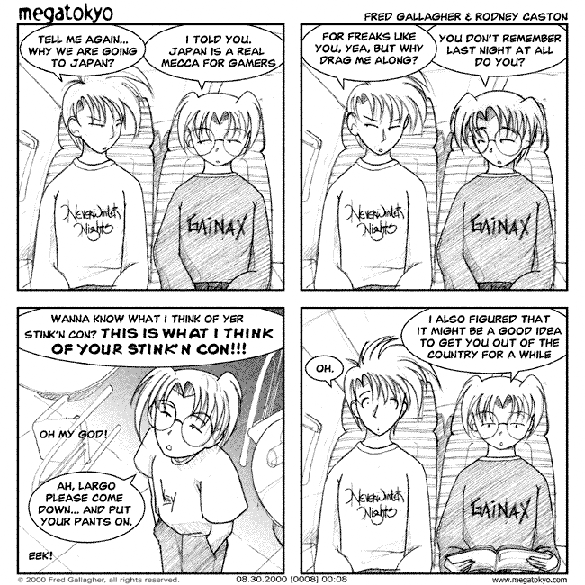 «Мегатокио» / 1 глава, Фред Галлахер, Родни Кастон, 2000 (URL: https://megatokyo.com/strip/8) дата обращения 12.11.2025
