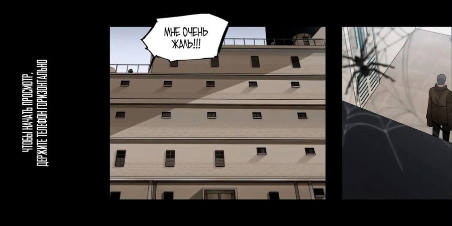 Ленточная верстка не ограничивает вебтун в использовании горизонтальных фреймов. Этому способствует возможность читателя перевернуть телефон во время чтения.