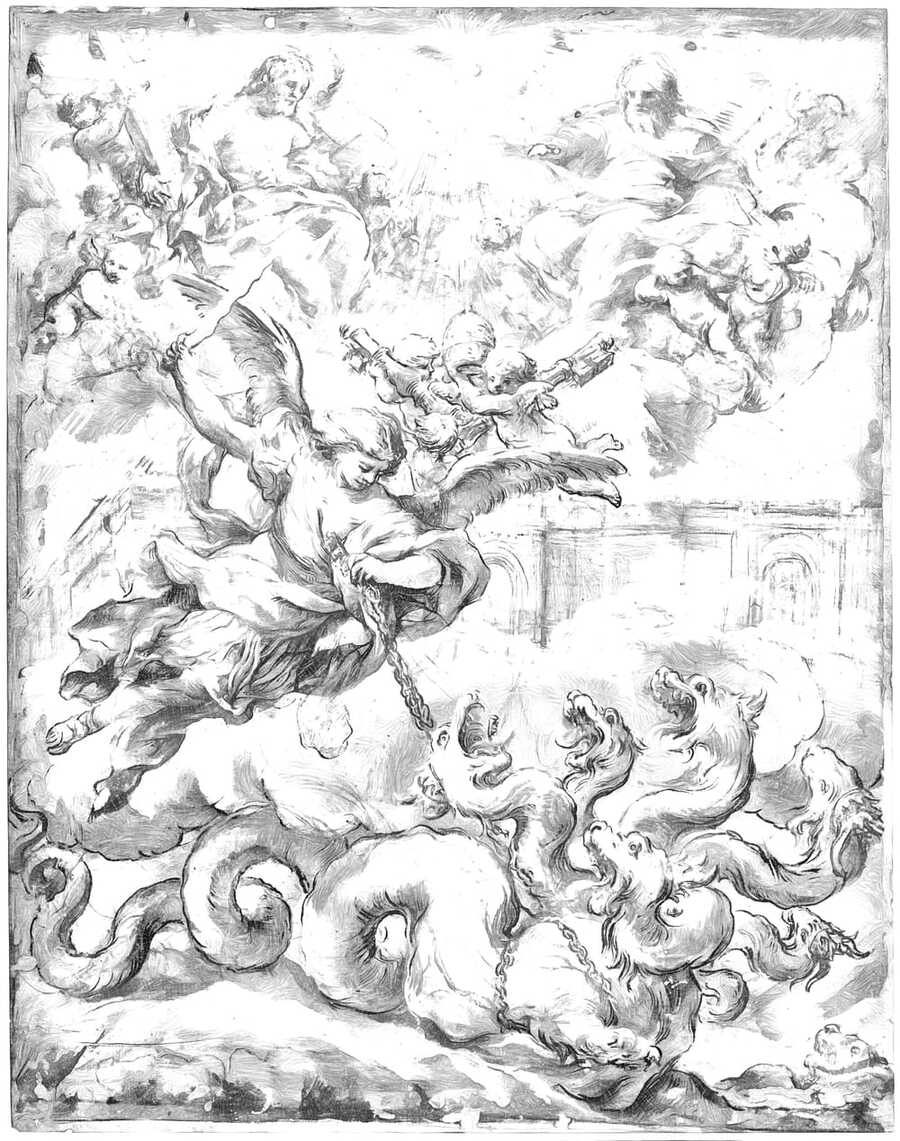Семь глав змия-дракона являли собой олицетворение Семи Смертных Грехов, как на гравюре Дюрера, или Апокалипсис, как у Рубенса, или были карикатурой, как когда этим драконом изображали Мартина Лютера, у которого каждая голова извергает различную ложь.