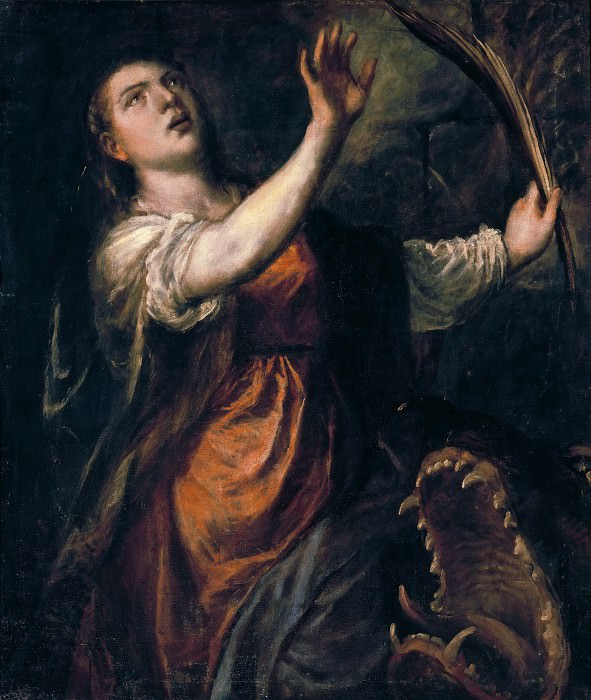 Святая Маргарита, Рафаэль и Джулио Романо, 1518–1520 гг. // Святая Маргарита и дракон, Тициано Вечеллио, 1565–1570 гг.