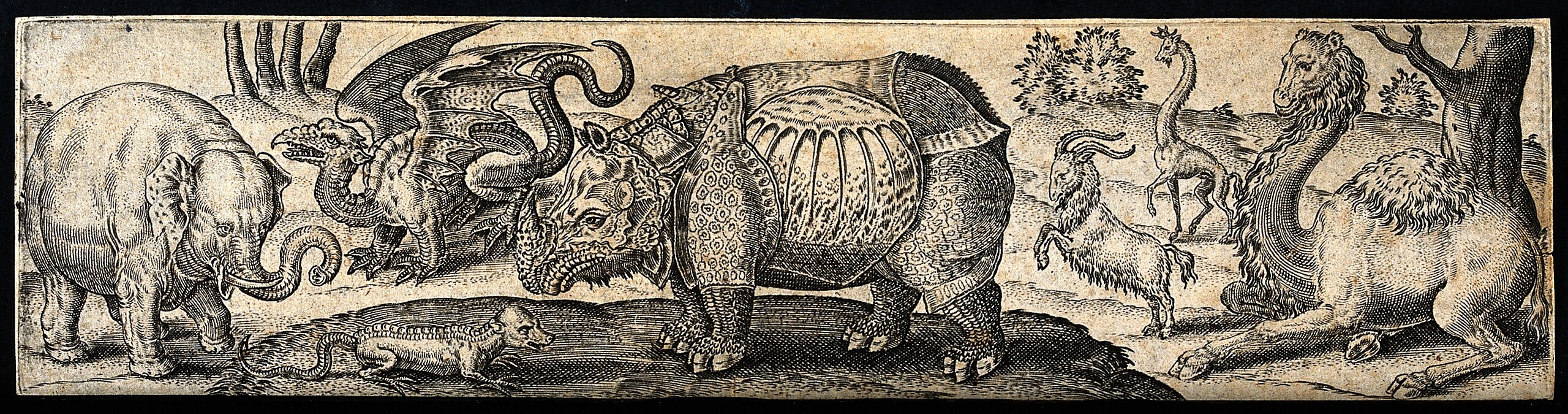 «Historiae naturalis de Insectis», Джон Джонстон, 1653 г. // Слон, дракон, рептилия, носорог, коза и два жирафа, Авраам де Брейн, XVI в. // Mundus Subterraneus, Афанасий Кирхер, 1665 г.