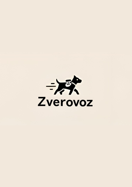 Create a neat logo for the Zverovoz brand. The logo should be font-based. The letters should be soft and rounded. Their shape should convey the love and care with which Zverovoz employees approach pet transportation. Style: minimalist, rounded, understated, modern, flat. Color palette: black, white, beige. When creating a logo, emphasize the soft roundness of the letterforms. The background of the image should be a neutral color, preferably white. There’s no need to create mockups or brand identity media. Simply create an image featuring only the font logo and a small image of a dog on a solid background. Convey a sense of caring for your pet through your logo.