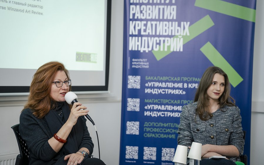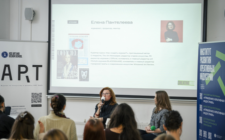 Главным гостем нашего мероприятия стала Елена Пантелеева — куратор курса ДПО ИРКИ НИУ ВШЭ «Как создать журнал. Основы практики разработки концепции и запуска СМИ на примере журнала об искусстве». Журналист, продюсер, ментор, автор сотен статей об искусстве и дизайне, разработчик образовательных программ по искусству и дизайну, топ-спикер ведущих форумов по теме креативных индустрий, организатор конференций и конкурсов по продвижению талантливой молодёжи.