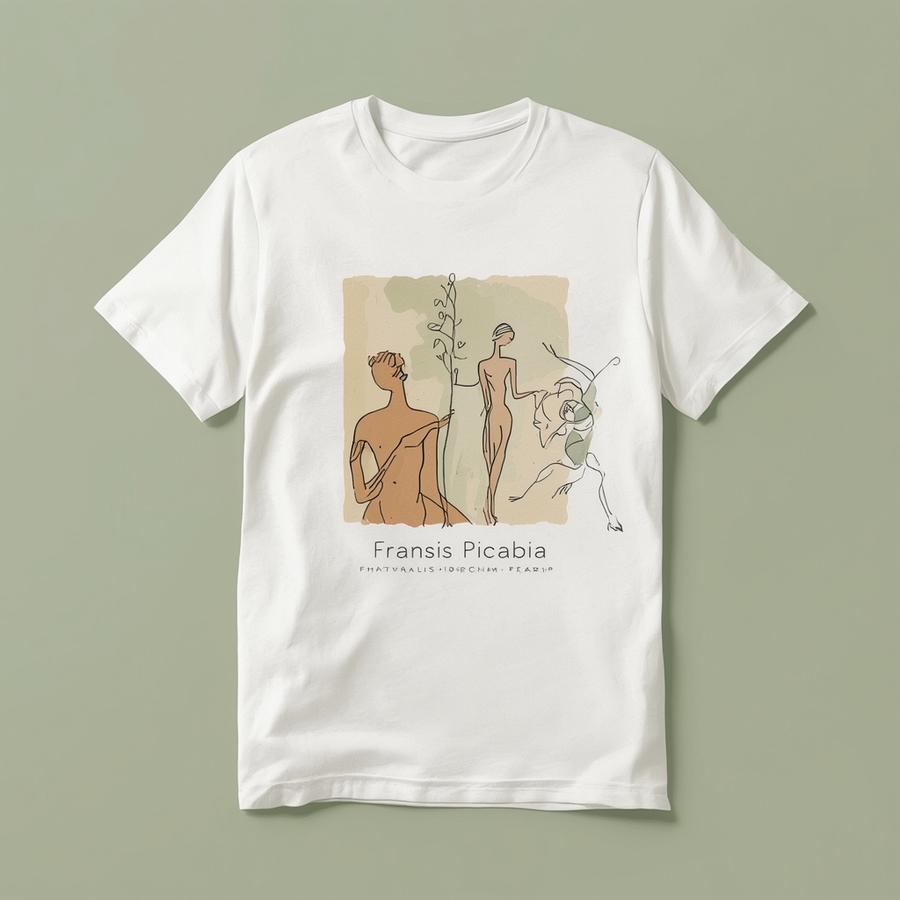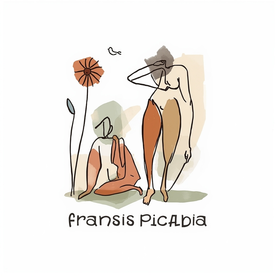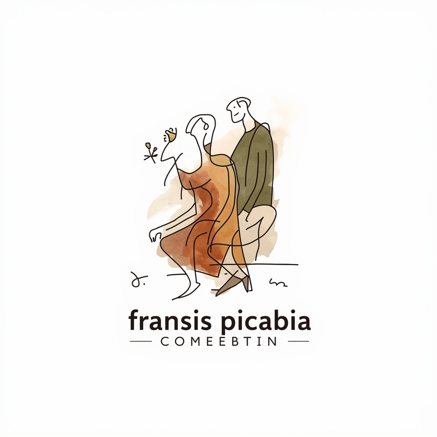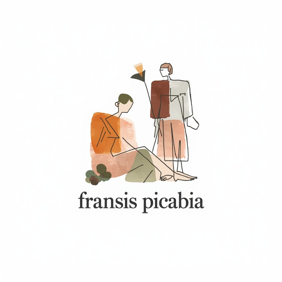промт для логотипа: Minimalist hand-drawn logo design in the surreal, Dadaist style of Francis Picabia. The emblem features abstracted human figures — one seated, one standing or leaning — rendered with flat color blocks, soft transparency, and overlapping layers, as if painted with watercolor and ink. Thin, expressive contour lines outline the forms, giving a sketchy, artistic feel. A stylized bird or flower floats nearby, echoing Picabia’s playful fusion of nature and machine. The text «fransis picabia» is integrated at the bottom in bold, slightly distorted sans-serif type — not separate, but part of the composition, appearing as if drawn by hand with the same brush. Color palette: muted earth tones (ochre, olive, brown), soft blues, pale orange, and gray — all with gentle gradients and semi-transparent overlays. Background: pure white. Style: graphic, illustrative, suitable for t-shirts, stickers, posters. No photorealism, no 3D, no sharp edges — everything should feel like a living doodle from Picabia’s sketchbook. Ultra-clean, scalable, 8K.