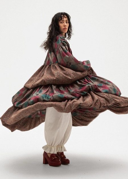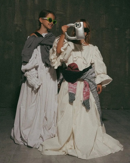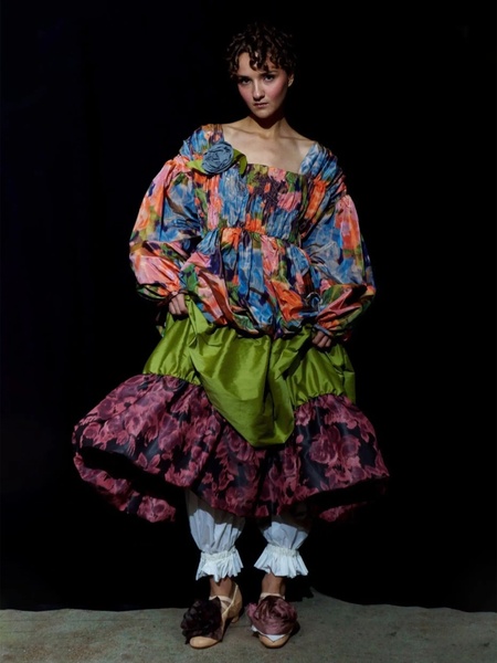 «Ода юности» — коллекция, вдохновленная детскими воспоминаниями: воздушные платья, крупные воланы и блузы с объемными рукавами, надетые поверх белых панталонов.