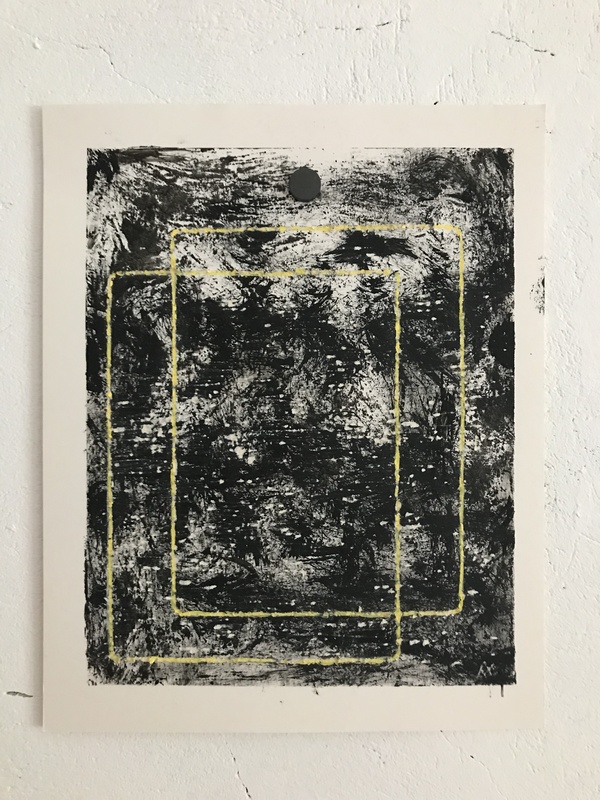 «Вот я настоящий», — сказала одна мысль пустоте вслед уходящей. «Переход 2» 25/20 см. Монотипия, сграффито, акрил, бумага.
