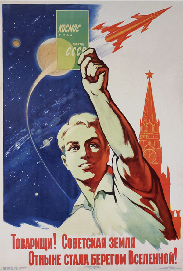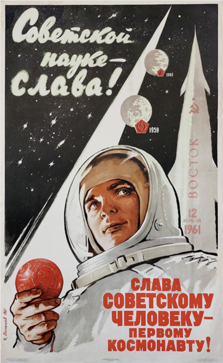 В конце 1950-х и 1960-х годов главной темой советского плаката стала космическая гонка. Плакаты прославляли достижения от запуска «Спутника» до полёта Юрия Гагарина, плакатные образы формировали чувство национальной гордости и символизировали научный прогресс страны. Работы Вадима Воликова (1961) стали характерными примерами этого направления