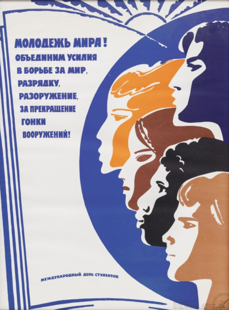 Ефимов Б. Е., Мир, разрядка, сотрудничество. СССР (1983)/ Сурьянинов Р. В., Молодежь — за мир, демократию и социальный прогресс! (1977)