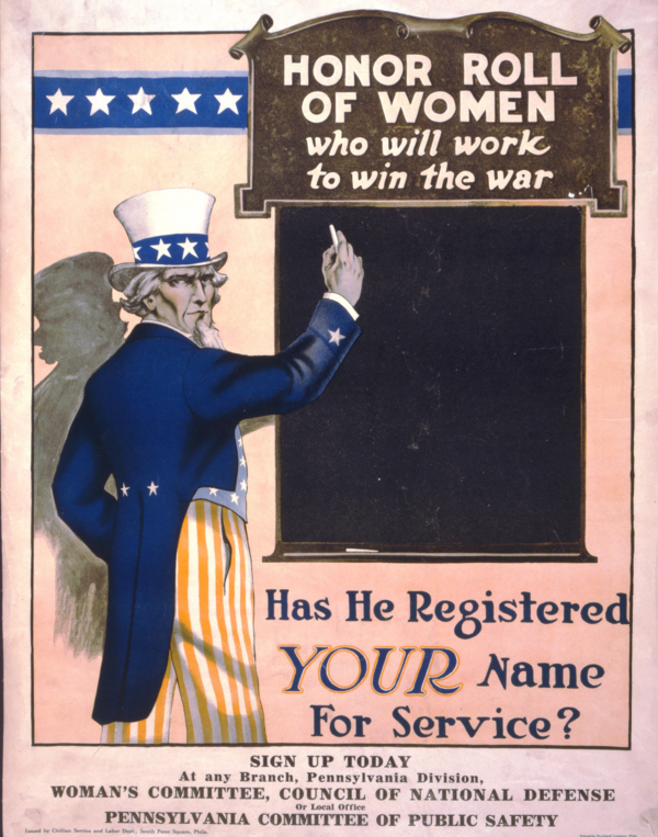 Государственная пропаганда США во время первой мировой была направлена на несколько важных задач: мобилизацию армии, экономическую мобилизацию — покупку облигаций свободы, а также привлечение женщин к работе на фабриках и предприятиях, поскольку мужчины уходили на фронт.