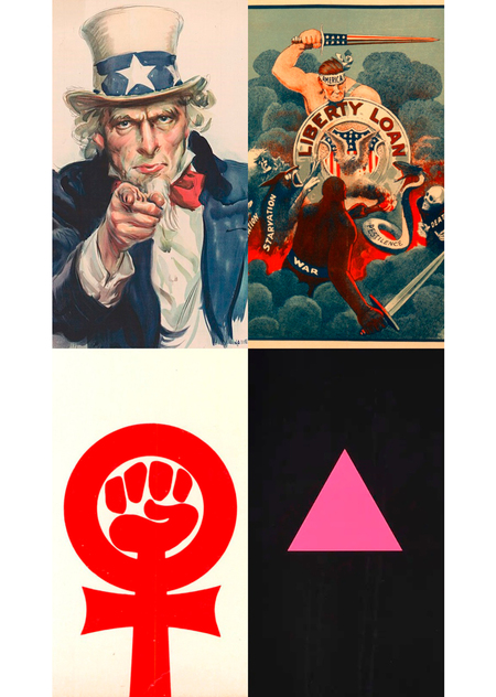 Среди протестов за права в 20 веке США можно выделить два самых ярких движения: за права темнокожих и за права женщин. В основном плакатам этих движений характерен минималистичный стиль, позволяющий сконцентрировать внимание на мощных лозунгах, становящихся главным оружием в борьбе за социальную справедливость. Несмотря на общие черты в стремлении к лаконичности, визуальные подходы разнились: в феминистских плакатах акцент делался на символах единства, поддержки и женственности, тогда как в плакатах движения за гражданские права афроамериканцев использовалась символика, напрямую связанная с историей борьбы за свободу, самоопределение и противостояние расизму.