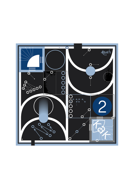 Платок «О7» — визуализация поиска причинно-следственных связей в обыденности. Он является частью серии из восьми векторных композиций, дополненных абстрактными пятнами туши, напечатанных на ткани.
