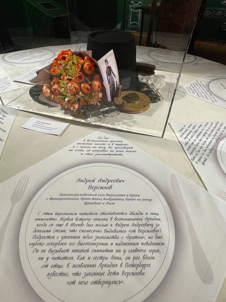 Выставка — исследование, посвященная 150-летию первой публикации романа Ф. М. Достоевского «Подросток». Изначально это произведение должно было называться «Беспорядок». «Разложение — главная видимая мысль романа», — говорил автор. Выставка предлагает разобраться в этом хаосе: кто он, главный герой романа, какой мир его окружает? На выставке можно познакомиться с историей создания романа, понять — какой социальный контекст сопутствовал творческому процессу, изучить денежный вопрос, увидеть топографию текста, почувствовать азарт героя, «летящего в пространстве и времени», рассмотреть «угол», в котором живет аркадий, и вместе с ним оказаться в центре авантюрных хитросплетений сюжета. Экспозиция имеет трехчастную структуру содержательно и визуально.