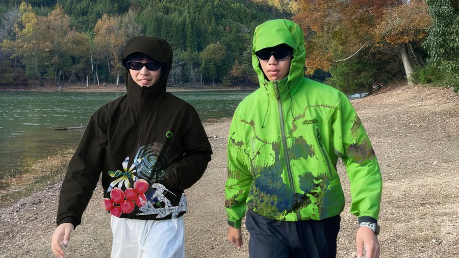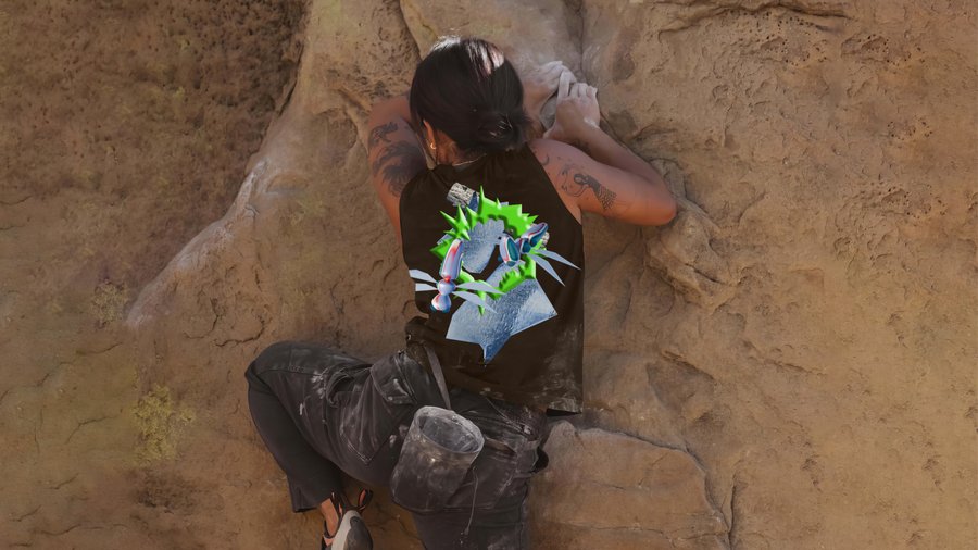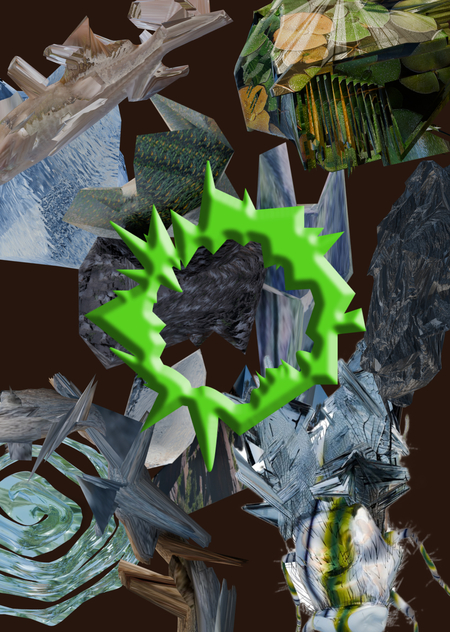 Это выражается в ломаных, колких природных полигонах и типографике, а также дребежащих текстурах