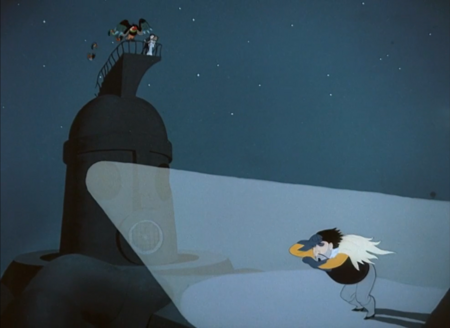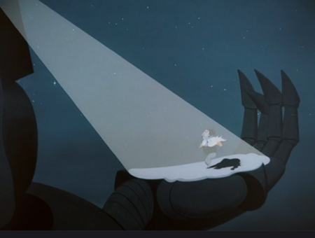 При всем при этом художественный стиль «Короля и птицы» не инновационный. Сам Поль Гримо уже анимировал похожим образом свои короткометражки. Самая близкая к визуальному языку анализируемого мультфильма — «Маленький солдат» 1947-го года. Персонажи в ней, хоть и куклы, но двигаются как живые, не давая зрителю в этом засомневаться.