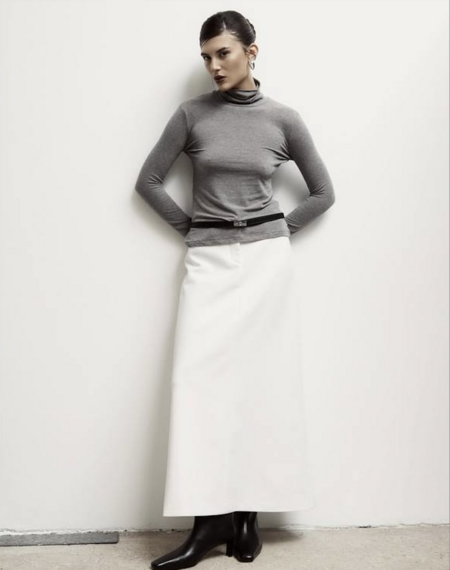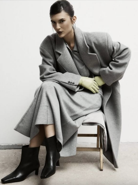 Ключевой визуальной идеей съёмки стал минимализм в оттенках серого, белого, лимонного, шоколадного с акцентными деталями и многослойностью. Ключевые айтемы: пальто, костюм