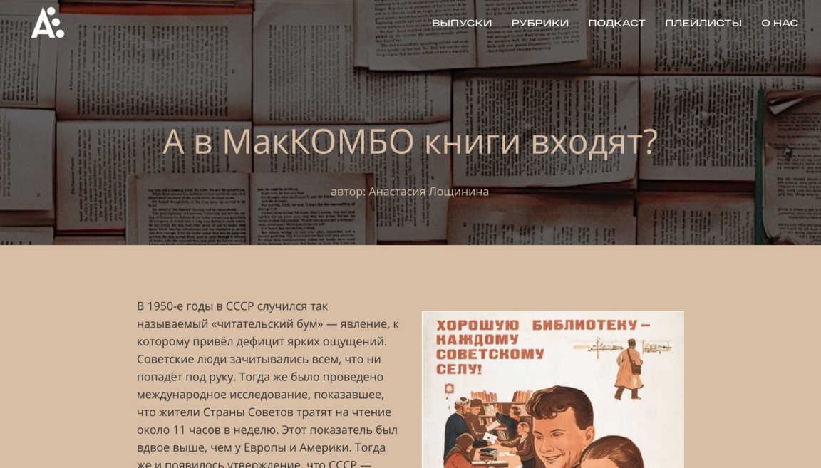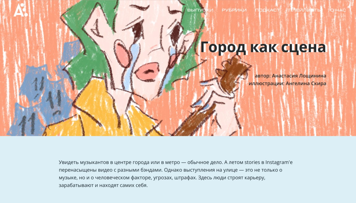 Задачи: руководила отделом авторов и дизайнеров, писала лонгриды и вела авторскую рубрику с интервью с профессионалами из креативных индустрий (режиссёры, монтажеры, операторы, журналисты, фотографы, стилисты, предприниматели в fashion)