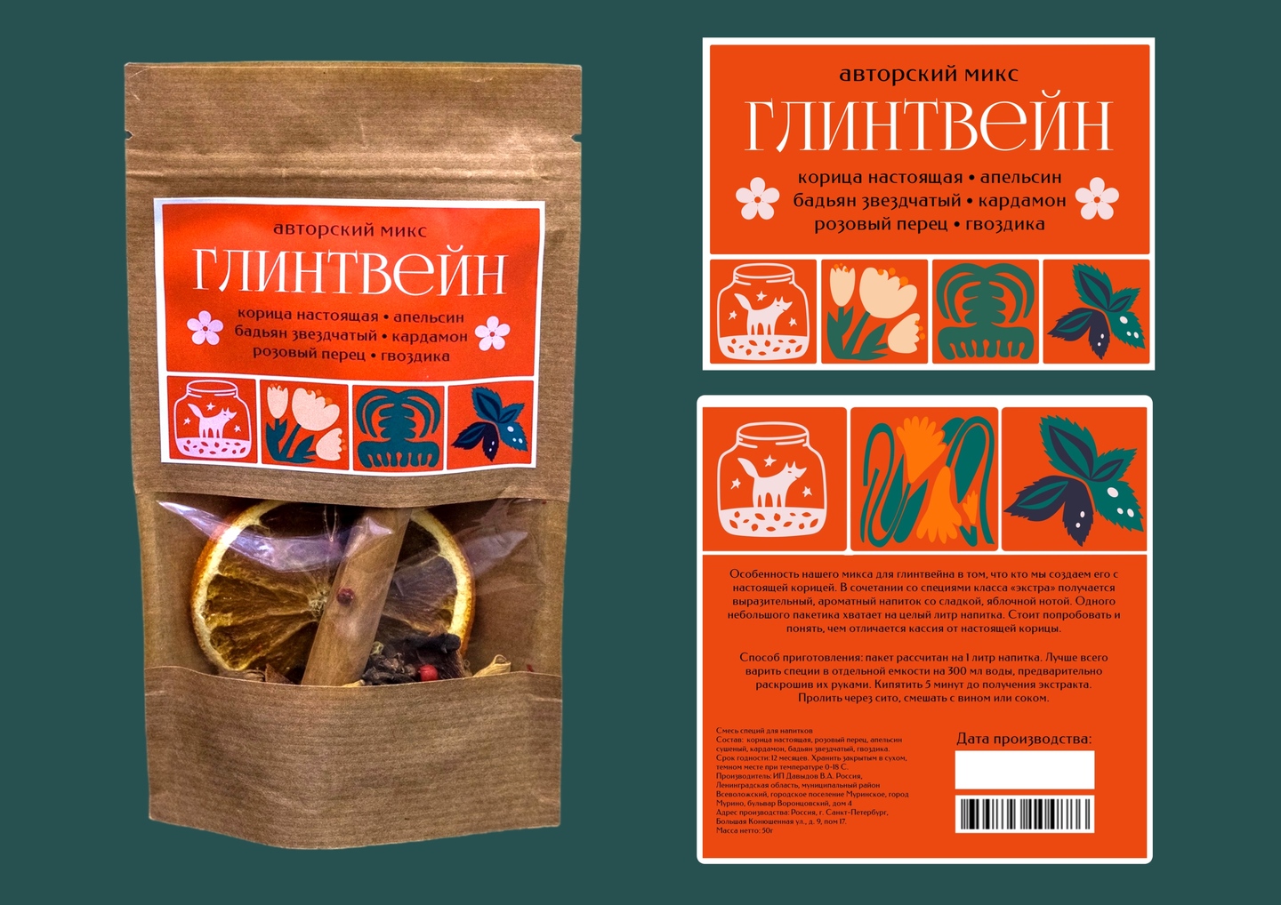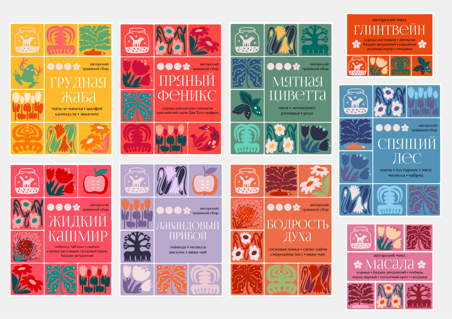 Задача: придумать простой и бюджетный способ брендировать упаковку травяных сборов для магазина Таинственный лис (СПб), акцентировать внимание на простой состав, указать способ приготовления