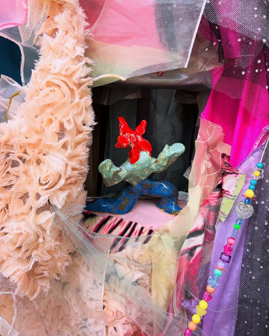 На базе пространства RASKROI (СПб) в мае 2025 была проведена выставка, посвященная переосмыслению русского искусства через текстильные инсталляции из переработанной одежды. К участию были приглашены учащиеся в академии Штиглица.