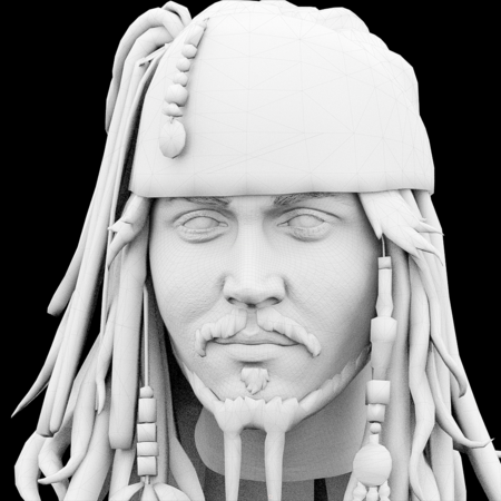 — Эксперименты с авторским визуальным стилем на примере оригинальных персонажей. — Освоение реалистичной 3D-графики через создание портретов известных личностей: Джонни Деппа в образе капитана Джека Воробья и Маршела Мэттерса (Eminem).