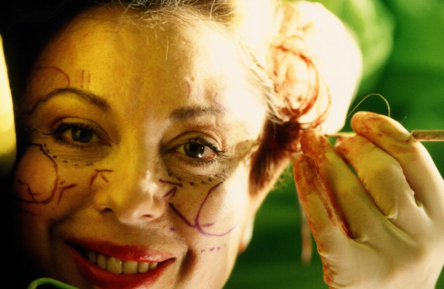 Орлан — французская художница, известная своими трансформациями тела и провокационными работами, исследующими идеи идентичности и женственности через призму технологий и модификаций тела. В проекте «The Reincarnation of Saint Orlan» она проводит серию пластических операций, которые являются составной частью ее художественной практики. Художница использует свое тело как холст, на котором создаются произведения искусства, вдохновленные различными культурами и историческими эпохами. Каждая операция записывается и трансформируется в видеоарт, а также в инсталляции, где зрители могут поучаствовать в процессе.