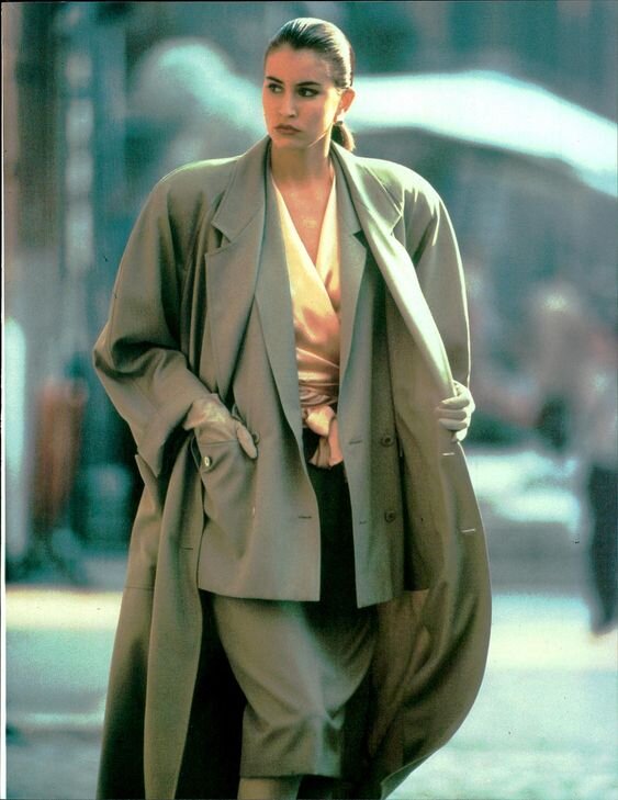 «…женщины нуждались в одежде, которая придавала бы им уверенность, транслировала их целеустремлённость и помогала утвердиться в преимущественно мужском мире деловых взаимоотношений, при этом не лишая их женственности,» — Армани
