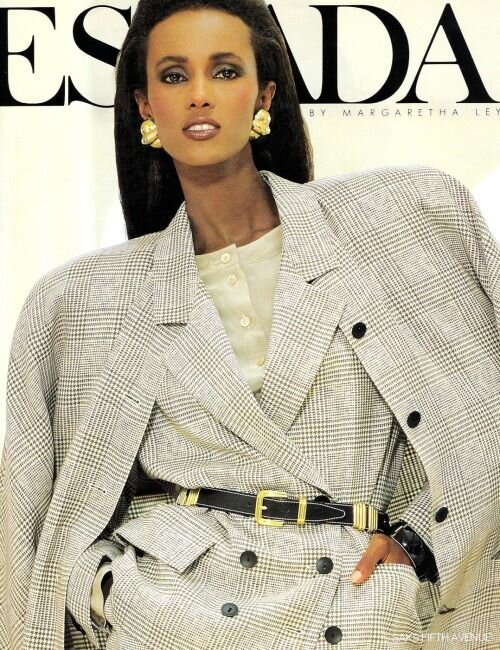 Грейс Джонс: 1981 | на обложке альбома Nightclubbing, 1981. Эту обложку можно считать знаковой для десятилетия, когда женщины переоденутся в костюмы с утрированной линией плеч
