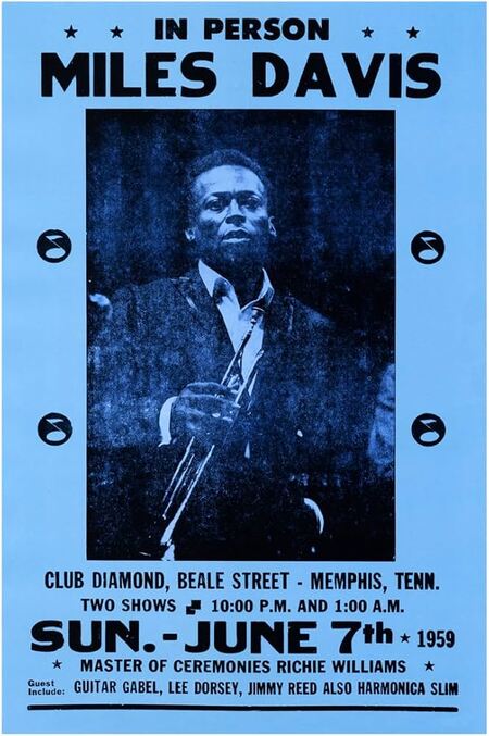 (1)Винтовая пластинка «Kind of Blue» / Miles Davis / 1959; (2)Концертная Афиша / Miles Davis / 1959