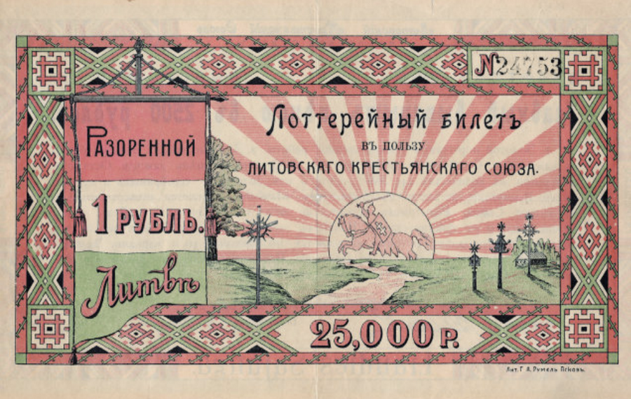 1. Билет лотереи Псковского отдела Литовского крестьянского союза. Псков. 1918 2. Билет благотворительной лотереи 1914 года (первый выпуск). Санкт-Петербург. 1914