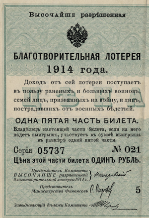 Еще до революции лотереи часто проводили в благотворительных целях, например сбор денег для помощи раненным солдатам Первой мировой войны.