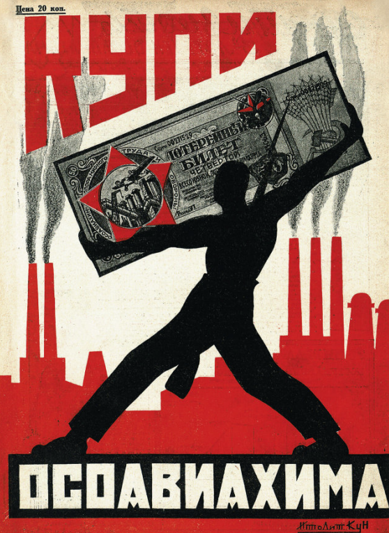 Оформление рекламных плакатов лотереи 1920х сводится к двум основным принципам. С одной стороны, это позитивный портрет советского человека — сильного, статного рабочего, пластика его тела выполнена художником в лучших традициях советской графики. С другой стороны, прямой призыв о помощи голодающим, прямолинейная социальная реклама, скорее предназначенная вызывать у зрителя чувство ужаса или стыда от собственного бездействия.