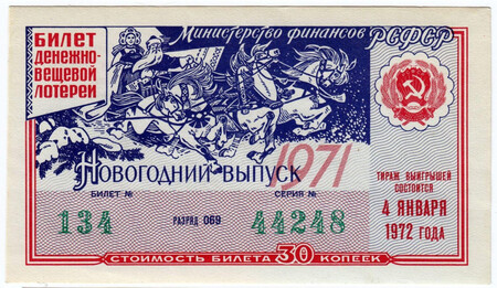 Как раз эту роль и выполняла государственная лотерея в советском союзе. В начале 20го века советскими властями предпринимались попытки запретить данную практику, как несправедливый пережиток буржуазного прошлого. Однако уже в 1922 м году в результате массового голода была проведена первая советская лотерея с целью помочь пострадавшим гражданам. В последствии в стране разыгрывались многочисленные государственные лотереи, начиная с 50х годов и вплоть до распада СССР спортивные и художественные лотереи проводились регулярно. Сборы от государственных лотерей приносили стране немалый доход.