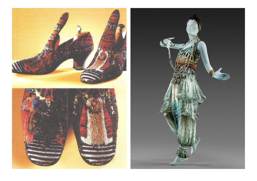 Бисер в этом объекте — аллюзия на роскошь, свойственную работам Пуаре, где восточные мотивы и орнаменты сливаются в гармонию шика ар-деко.