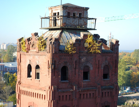 На фото: Деталь башни. Завод «Вулкан». Производственный корпус с водонапорной башней. Санкт-Петербург, Россия. М. Е. Сунцов. 1915 г.