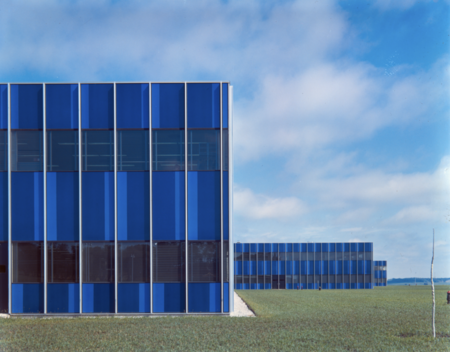 Следующий пример схож с фабрикой Херманна Миллера в Великобритании, обсуждаемой ранее. А именно причиной, по которой он попал в визуальное исследование. В здании нет никаких особенных декоративных элементов или орнаментов. Оно выделяется своими яркими синими панелями, отсылающие на «небо Минессоты» — штат, в котором построено здание. На мой взгляд, в здание заложена художественная мысль, идея, поэтому оно имеет ценность. А особый интерес к этому нему вызывает тот факт, что оно красиво, будучи промышленным, которое по логике должно быть строгим и рациональным. Действительно, по форме так и оказывается, однако материал облицовки делает здание в каком-то смысле сакральным, личным. [5]