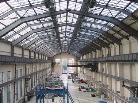 Одно из известнейших зданий комплекса — сборочный цех для крупных машин. Он примечателен своей крышей, выполненной полностью стекла. В промышленных зданиях часто встречаются большие окна, что позволяет свету заполнять пространство. Однако, стеклянная крыша, вдохновленная всемирными выставками, придает зданию особую теплоту, которую не ожидаешь встретить в промышленном строении.