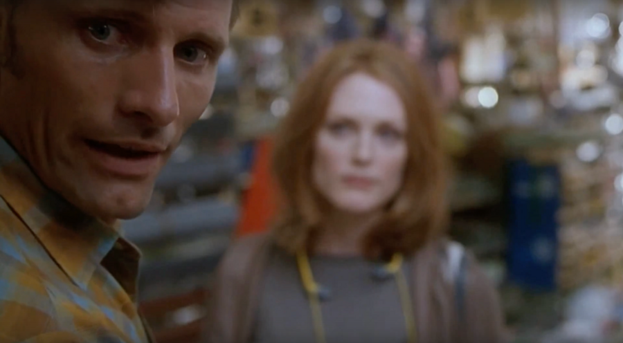 Здесь же важно упомянуть, как Дойл раскрывает героев относительно друг друга. С таким же трепетом, с каким он изучает отдельную личность, он относится и к взаимоотношениям внутри кадра. Чаще всего эта коммуникация раскрывается через построение кадра с глубиной: один человек находится на заднем плане, а второй — на переднем, часто частично загораживая первого.