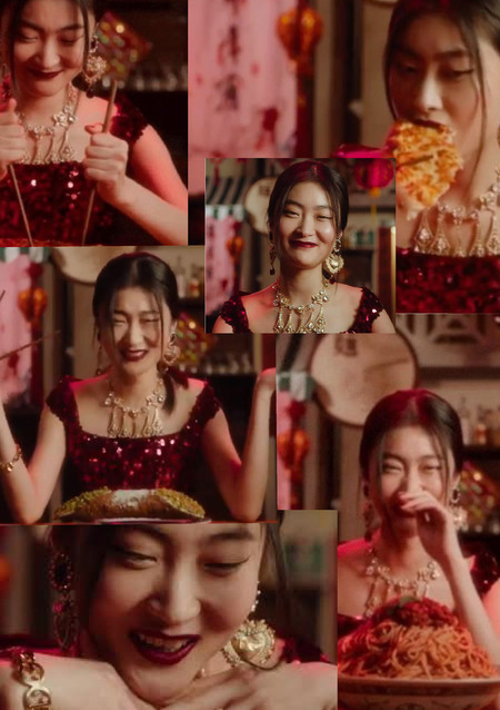 В роликах молодая азиатка в платье от Dolce & Gabbana пытается есть пиццу, спагетти и канноли китайскими палочками. Закадровый мужской голос комментирует попытки девушки есть намеренно карикатурным голосом с китайским акцентом, сопровождая это не уместными комментариями: