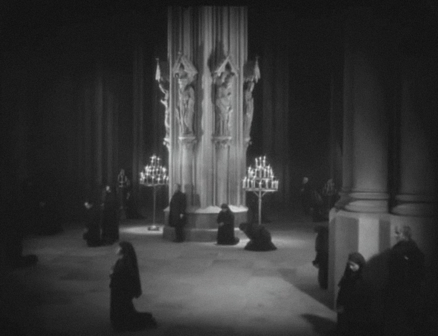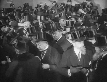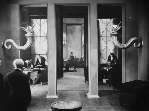 В сцене с гипнотическим представлением ряды людей сливаются в одну безликую массу — метафора контроля, которую имеет над ними доктор Мабузе.