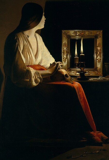 «Кающаяся Магдалина». ок. 1635 г. Жак Бланшер. «Магдалина с курящей свечой», 1640. Жорж де Латур.