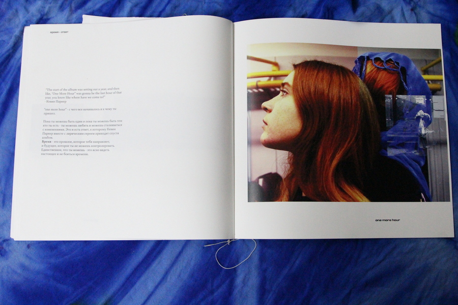 Второй раздел раскрывает время как могущественную силу, которая меняет все. Визуально идея воплощается в нечетких фотографиях. На снимках голову героя закрывает платок — метафора неведомости перед будущим.