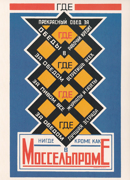Владимир Маяковский, Александр Родченко//Где прекрасный обед? Нигде, кроме как в Моссельпроме//Реклама ГУМа//1923