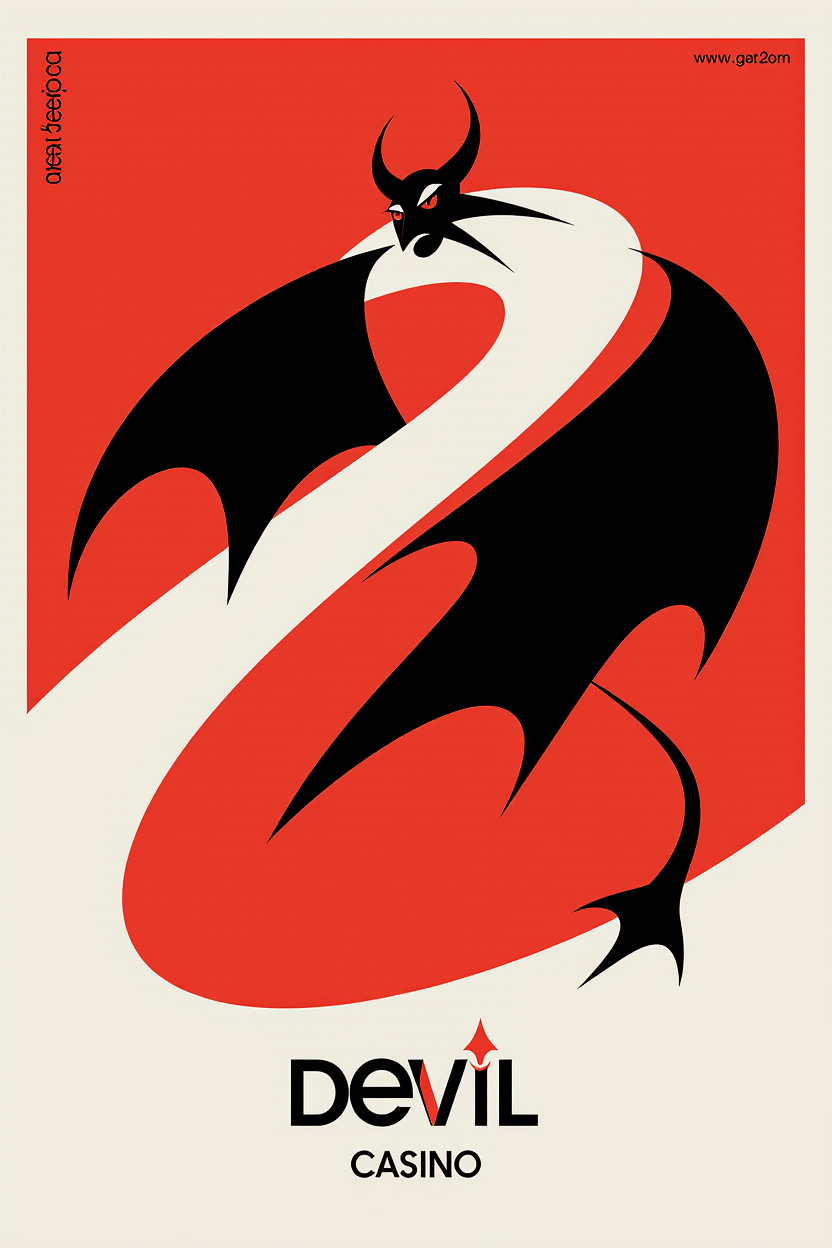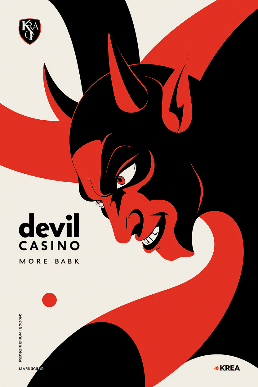 Промт: An advertising poster for devil casino in a minimalist mysterious style, in colors: black, red, white, a simple background, microtypography and a large logo. Сгенерировано в Krea