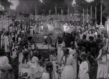 Со временем эта насыщенность постепенно успокаивается. Например, в фильме Фореста Хольгер-Мадсена " Путешествие на Марс» пространство уже менее детализированное. При этом тут уже можно заметить глубину пространства. Декорации не просто находятся на заднем плане, они позволяют актерам гулять внутри локаций и взаимодействовать с ними