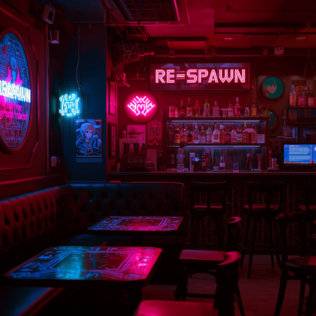 Геймерский кафе-бар «Re (SPAWN)» предоставит Вам максимально комфортную площадку и поможет найти новых тиммейтов или расслабиться в атмосфере киберпанка.